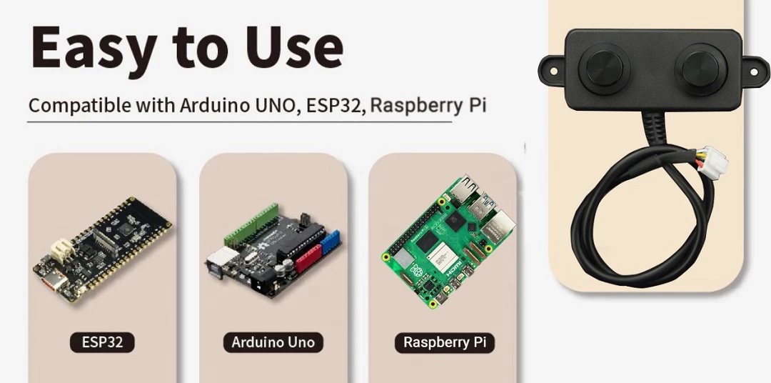 This ultrasonic distance detection sensor is designed with the DIY community in mind. It operates on a flexible 3.3V-5V power supply and communicates via a standard UART serial port, making it incredibly easy to connect to any microcontroller. It's fully compatible with popular platforms like Arduino, ESP32, and Raspberry Pi. A connection cable is included, allowing projects to be up and running in minutes, not hours.